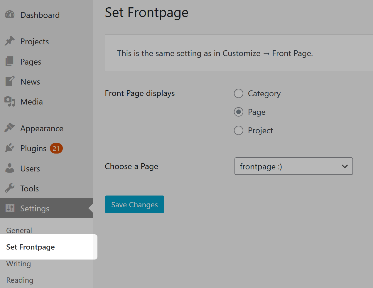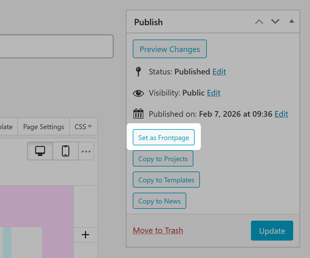 Set the Frontpage