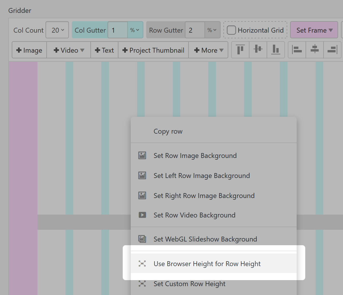 In the Gridder click "+More" and "+Thumbnail Grid"