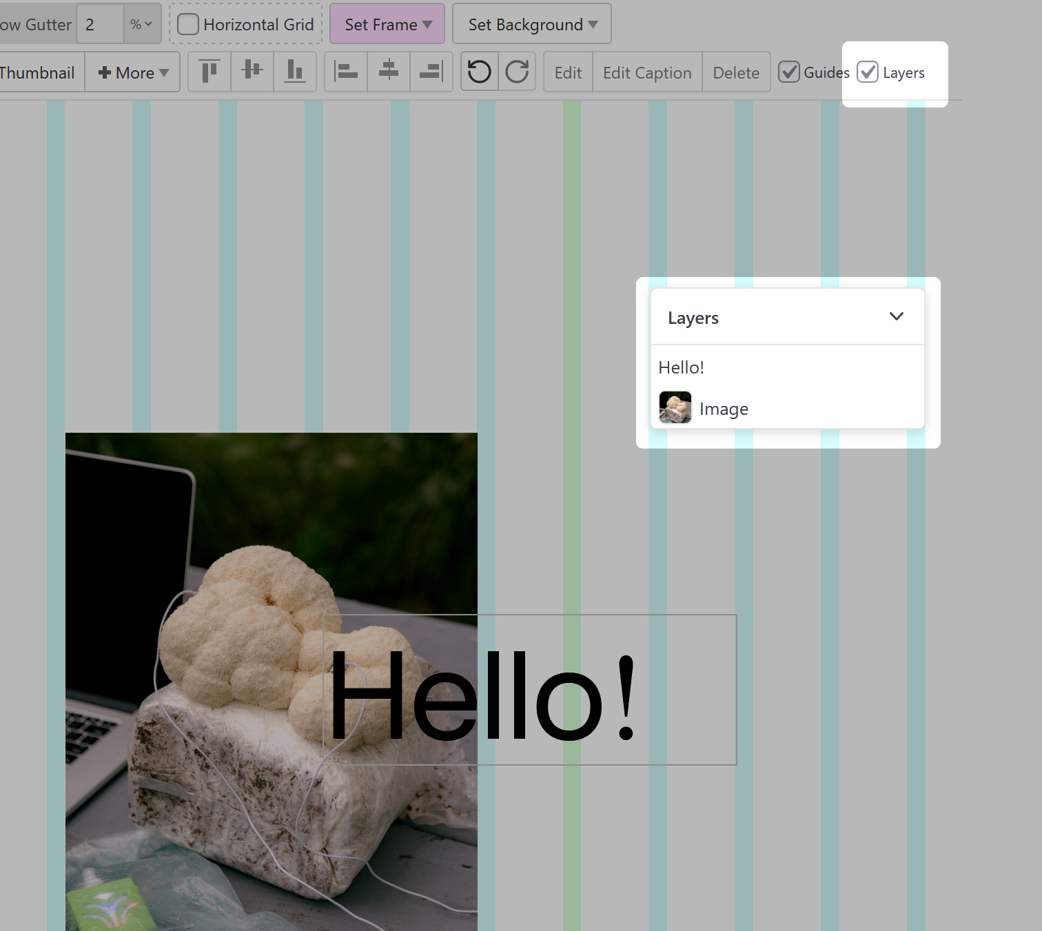 Add an image to your layout by using the "+Image" button in the Gridder.
