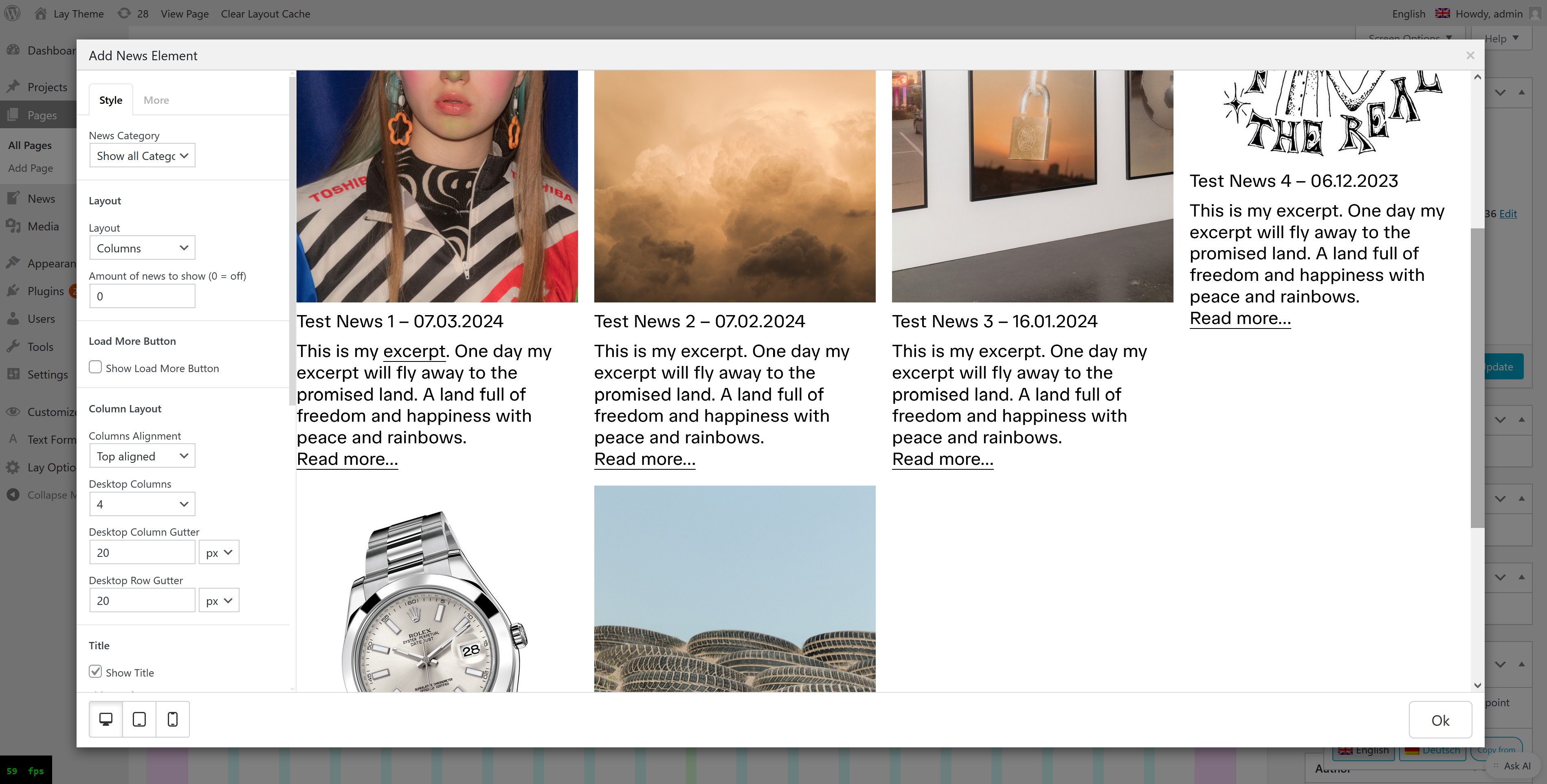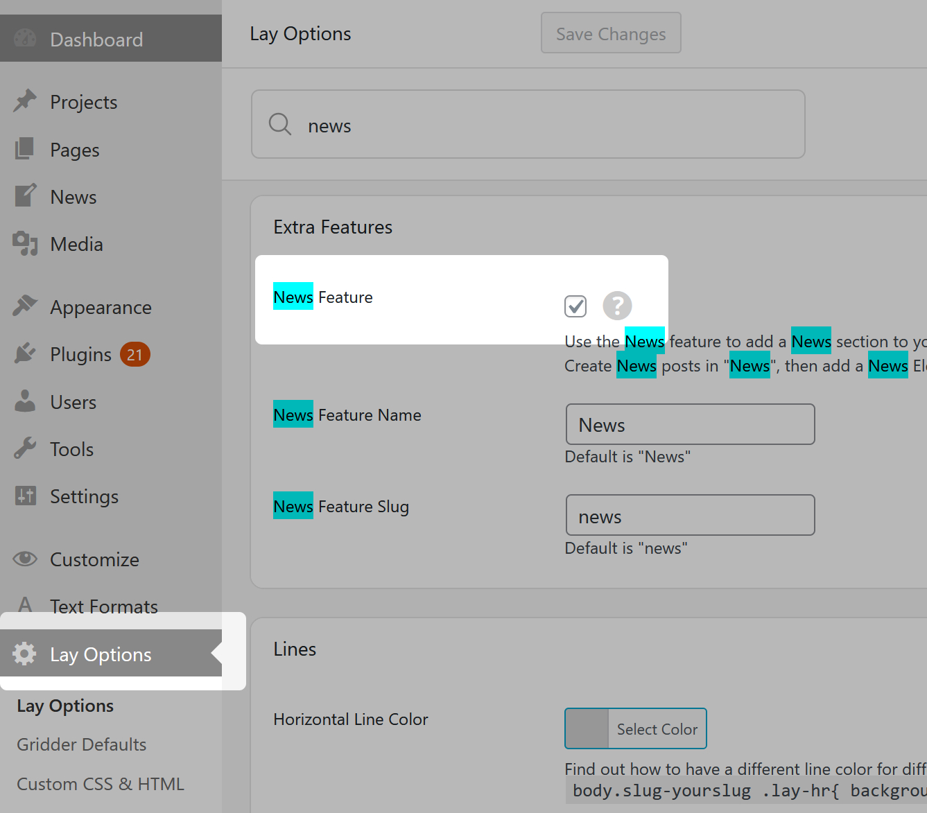 First activate the "News Feature" in "Lay Options" → "News Feature"