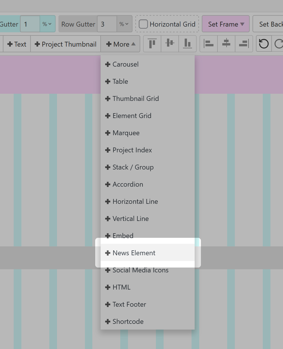 On that page, in your Gridder click "+More" → "+News Element".